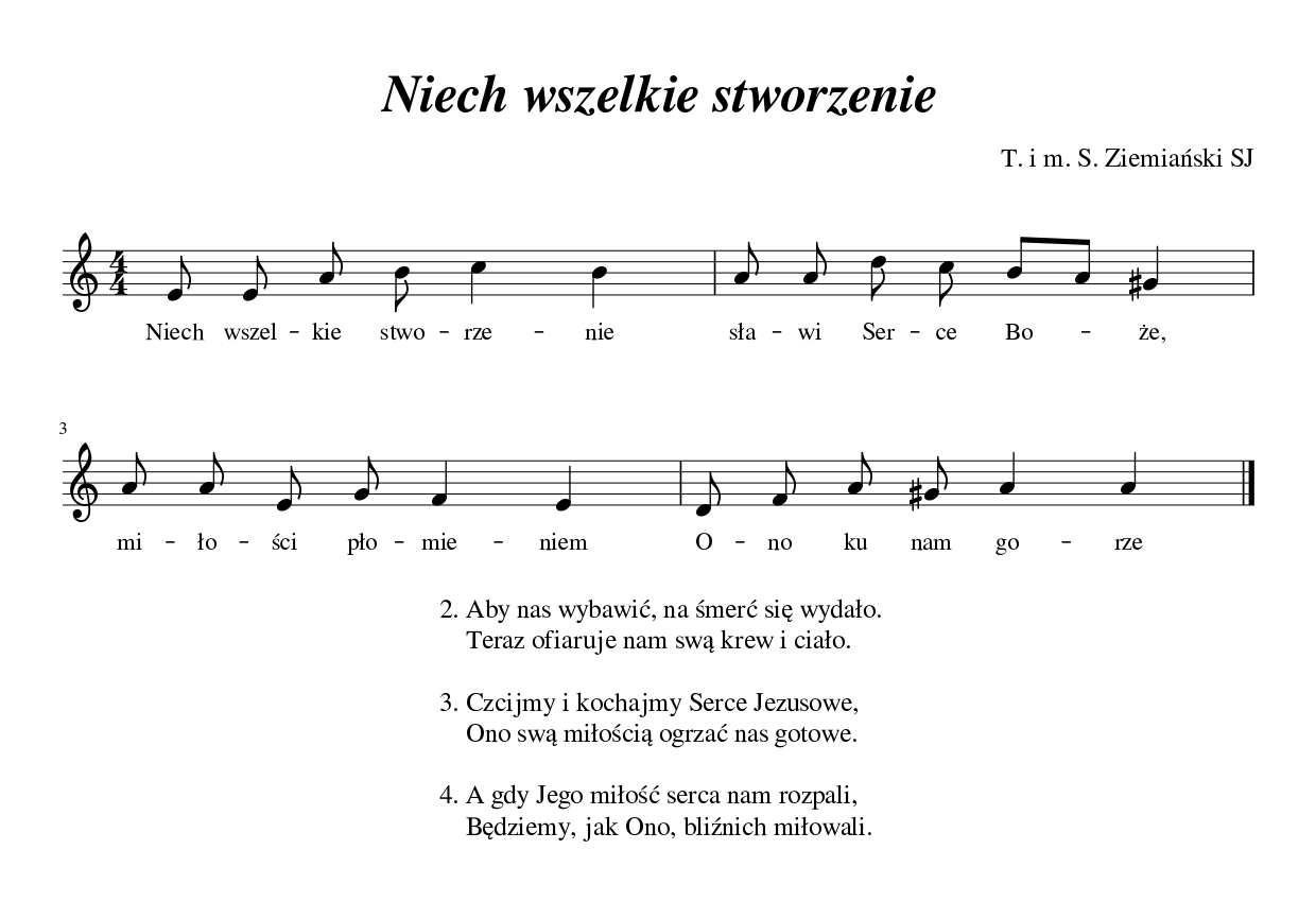 Drodzy Członkowie Apostolstwa Modlitwy! Trwa ogłoszony przez papieża Franciszka Nadzwyczajny Rok Miłosierdzia. Z tej okazji znany twórca pieśni religijnych ks. Stanisław Ziemiański SJ napisał pieśń o Bożym miłosierdziu. Dołóżmy więc starań, aby nauczyć się jej i rozpowszechnić ją w naszych środowiskach; parafiach i ogniskach Apostolstwa Modlitwy w Polsce i wśród Polonii.