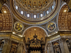 Jest najbardziej rozpoznawalnym dziełem architektonicznym nie tylko przez chrześcijan, ale i turystów. Tutaj przenikają się dwa światy: boski i ludzki i tu ucieleśnia się pragnienie spotkania człowieka z Bogiem. Kolosalna kopuła wieńczy Bazylikę św. Piotra i góruje nad całym miastem; jest widoczna z okolicznych wzgórz. Jej najwyższy punkt wznosi się 120 m nad posadzką kościoła. Bazylika jest symbolem piękna, majestatu i geniuszu artystów, i prawdziwym wyczynem sztuki architektonicznej. Wierni przybywają do niej z całego świata, aby pomodlić się u grobu Apostoła Piotra i otrzymać błogosławieństwo papieża.
